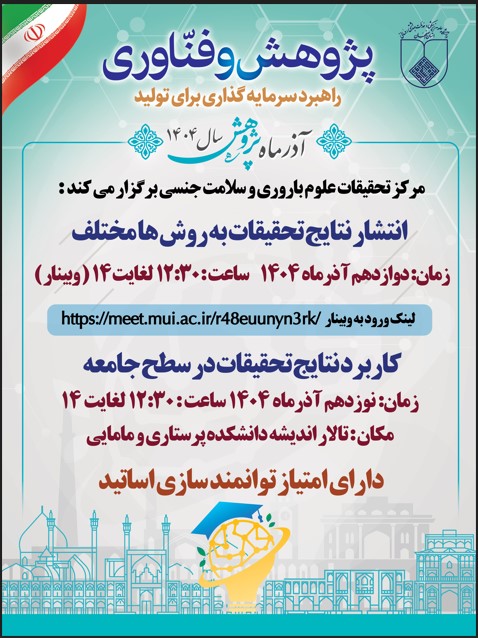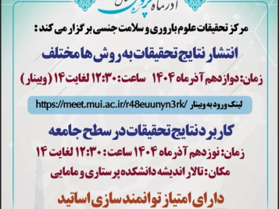 کارگاه های مرکز تحقیقات علوم باروری و سلامت جنسی در آذرماه پژوهش 1404 مرکز تحقیقات علوم باروری و سلامت جنسی برگزار می کند: